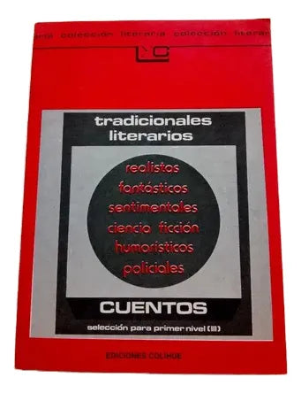 **Tradicionales literarios primer nivel (3)**: La publicación de Cuentos para el primer nivel III continúa la serie de Antologías organizadas a partir de las distintas modalidades narrativas que ya se han incorporado con éxito a la Colección Literaria LYC (Leer y Crear). Son responsables de la preparación de este volumen los profesores M. Cristina Planas y Eduardo Dayan.
